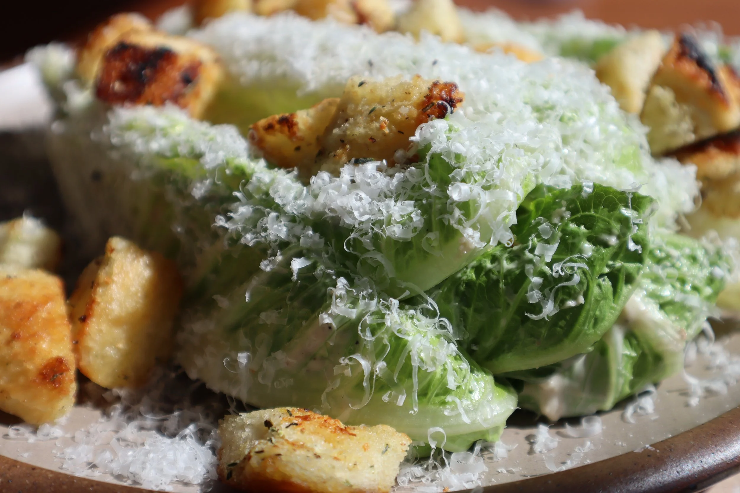 - To Serve: In a large bowl, add sliced romaine lettuce and your preferred amount of dressing and toss together until thoroughly combined. Top with freshly shredded or grated parmesan and homemade croutons!