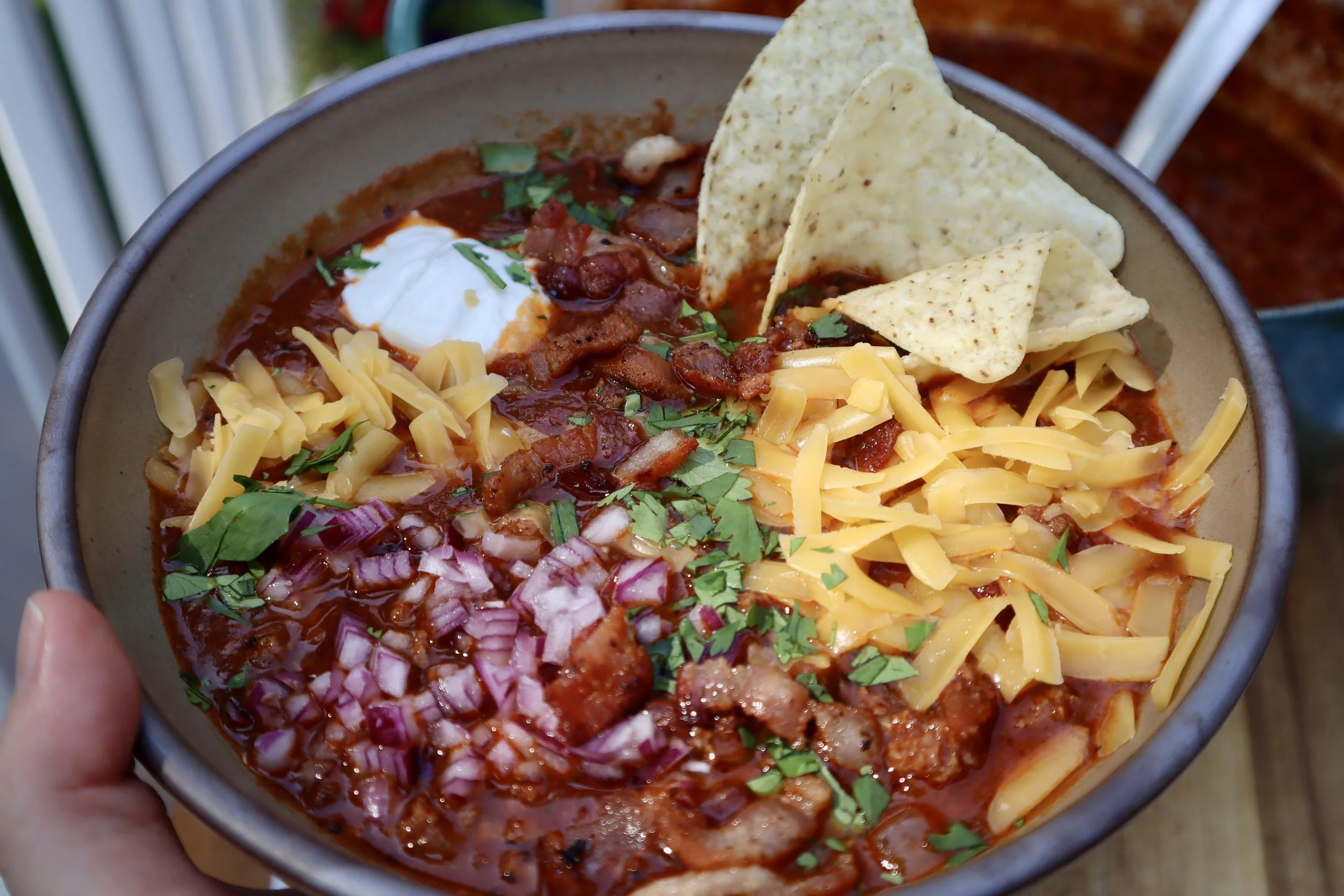 My favorite thing about chili is that it doubles as a chip dip, which is basically how I consume chili. Plus all of the toppings that go on it.