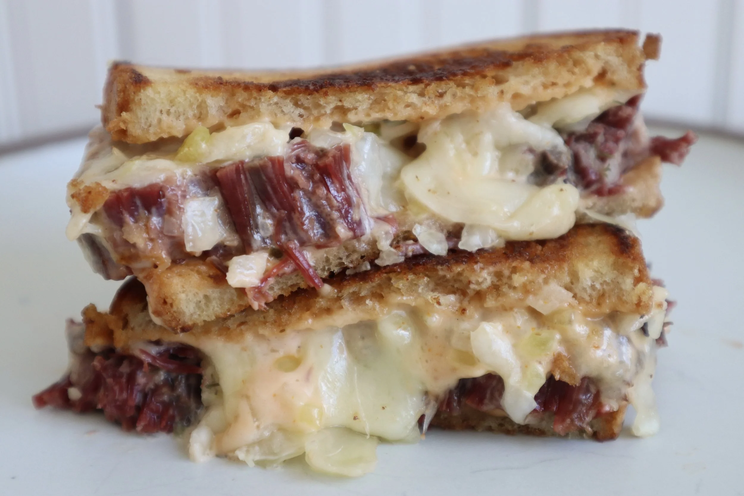 I’m a HUGE fan of Reubens, but they are truly hit or miss at restaurants. Most places use thin slices of corned beef or pastrami, but recently I ordered one that used thick, juicy chunks of fresh corned beef—and it completely changed the game. That sandwich was the inspiration for this recipe.
