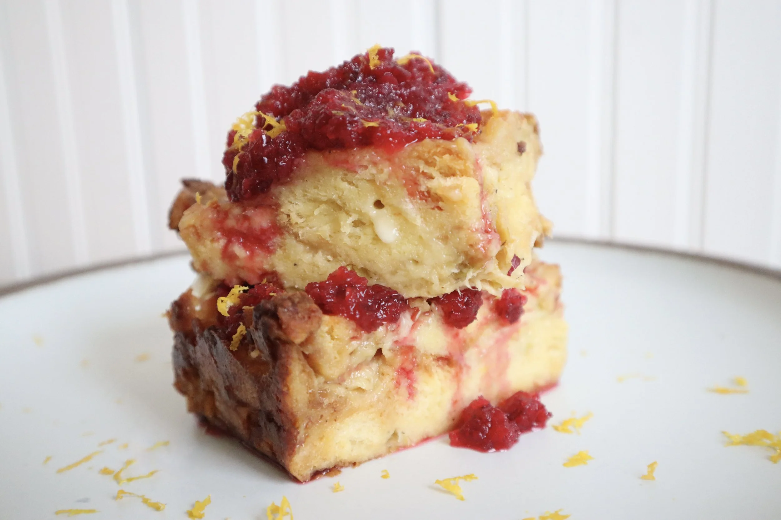 Toast or dry out the brioche, then set it aside to soak up the custard. Sauté the leeks and fennel until soft and caramelized, then add garlic, lemon zest, and juice. Whisk together the milk, cream, eggs, Dijon, and seasonings before folding in the bread. After the bread absorbs the custard, mix in the vegetables and cheeses, transfer everything to a greased baking dish, and bake until puffed, golden, and set.