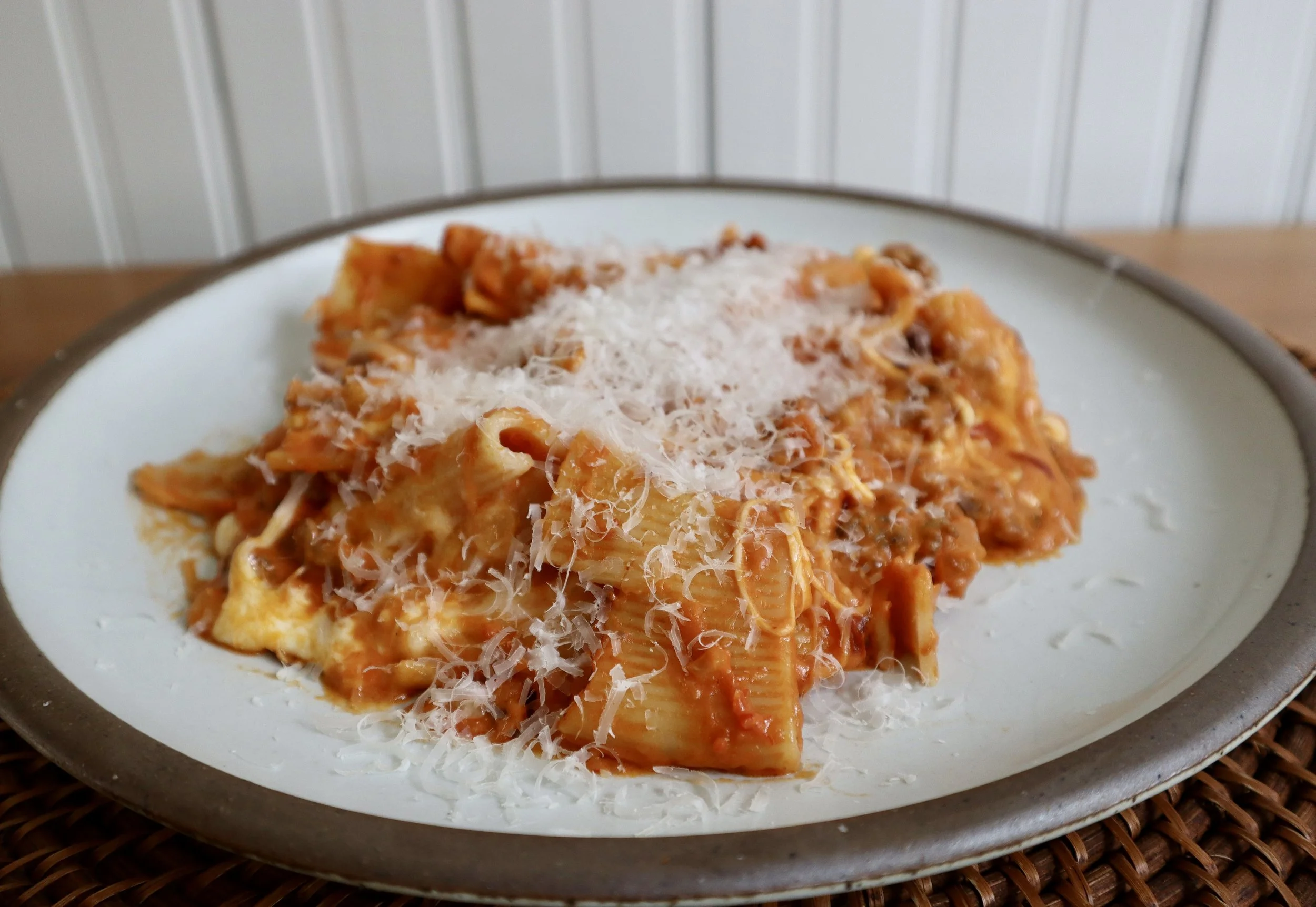 1 lb rigatoni pasta (or whatever pasta you’re into)